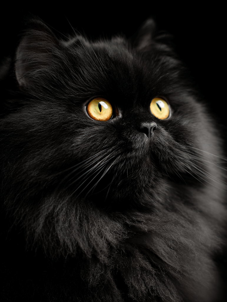In longhairs, the color often appears even more luxurious due to the dense, cushioned coat that softens and deepens the visual effect of black.