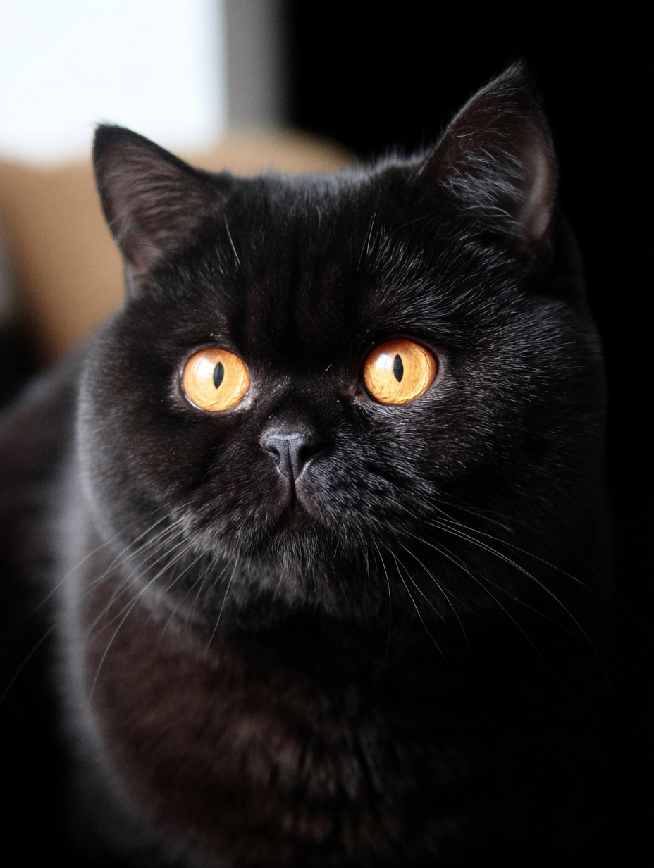 Temperament, structure, and personality remain identical: both are calm, affectionate, sturdy, and people-oriented. The only difference is the coat color and the eye color pairing — black British Shorthairs display copper or gold eyes rather than the occasional green seen in silver varieties.