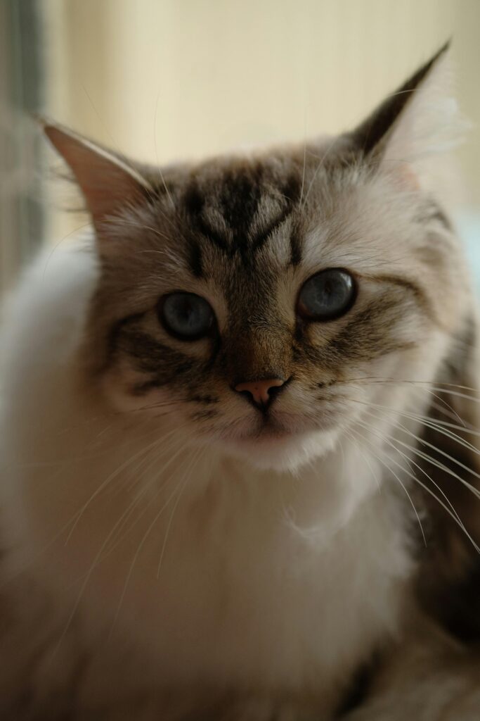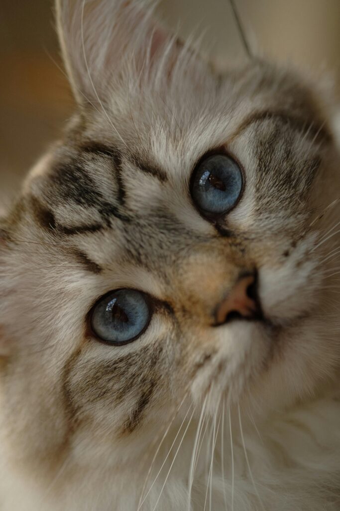 If your Ragdoll has visible stripes or an “M” on its forehead, it likely carries the Lynx (tabby) gene. This gene causes alternating bands of color on each hair shaft, which appear as fine rings and facial markings. The pattern typically develops as kittens age — most are born white and start to show striping by 8–10 weeks old.