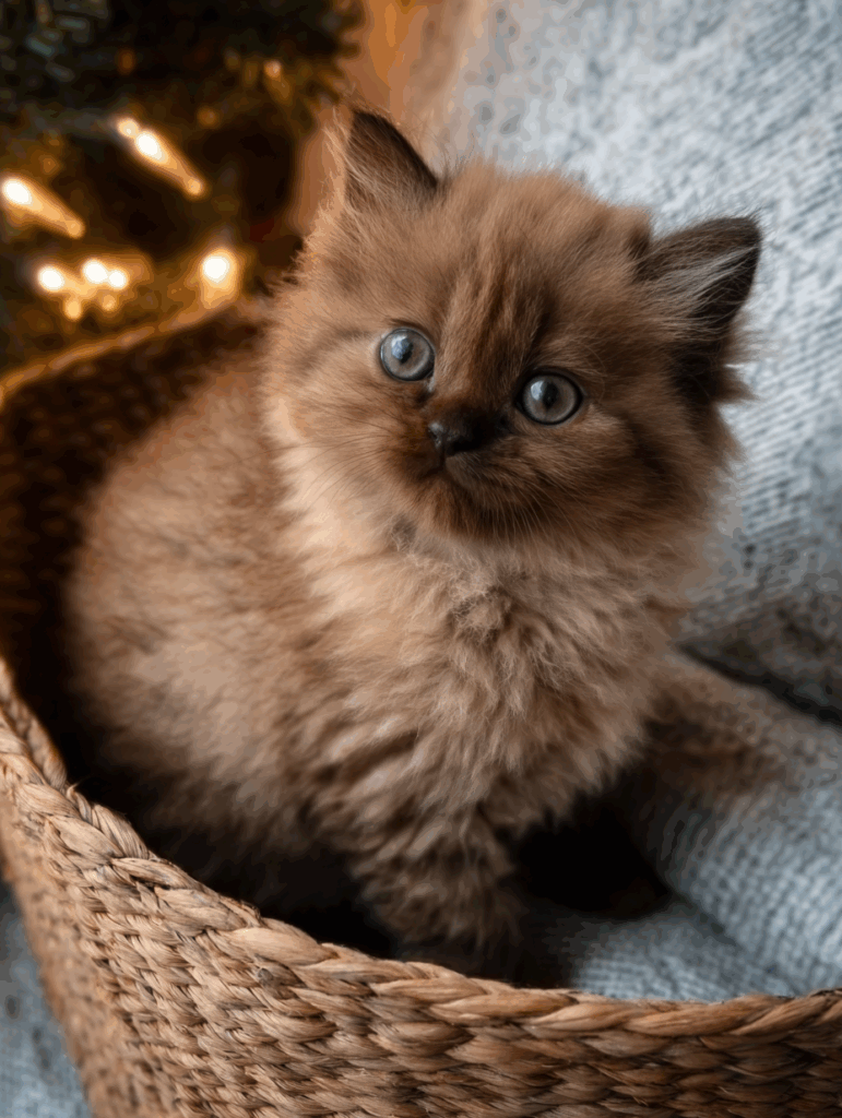 Once a week is usually ideal. Brushing removes loose fur, prevents tangles near the armpits or behind the ears, and keeps the coat plush and clean. Some families gently wipe the face or paws if their kitten plays in water or food. Grooming is also bonding time — Cherubims love touch and attention, and weekly grooming helps reinforce that trust.