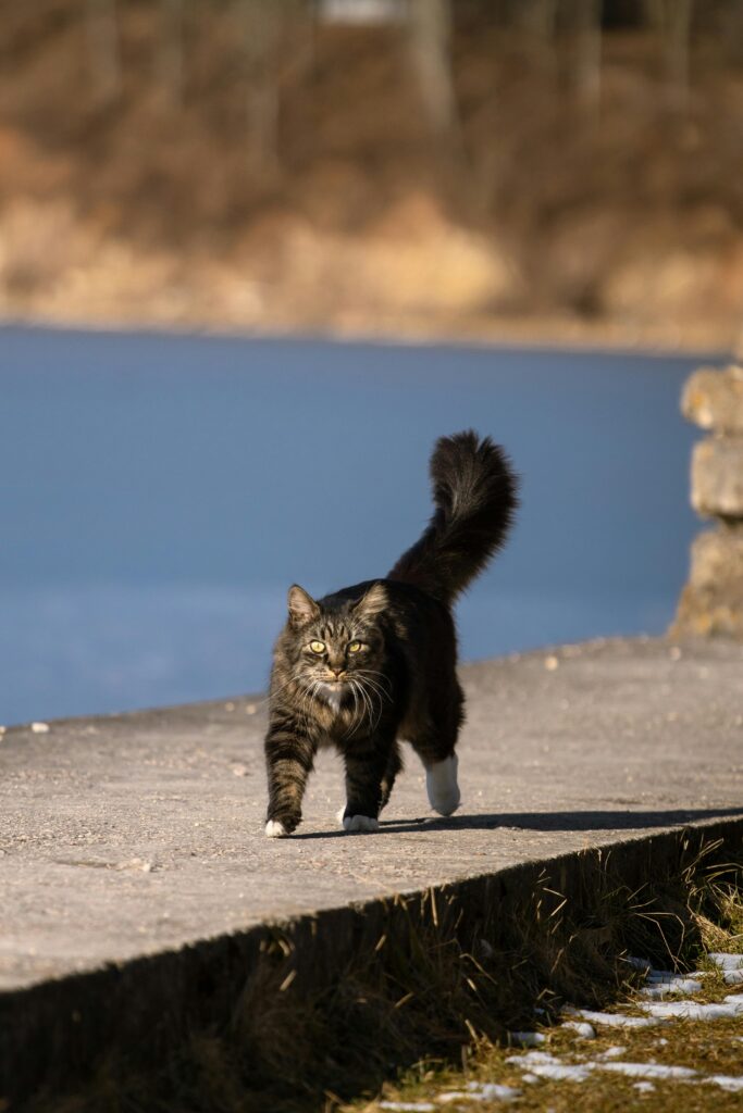 Maine Coons have long, full tails because they needed them for warmth and balance in their early environment. Their tail could wrap around their body like a blanket in winter, providing insulation during cold nights or while resting in barns. The tail also helped them maintain balance while climbing or navigating uneven, snowy terrain. This feature became a permanent and defining part of the breed’s appearance.