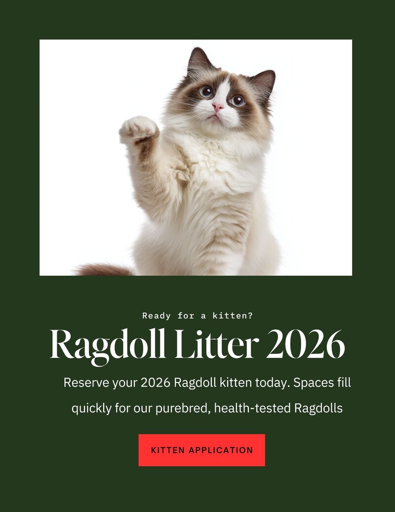 Reserve Your Ragdoll Kitten Today. Healthy, Home-Raised, and Ready to Love You!