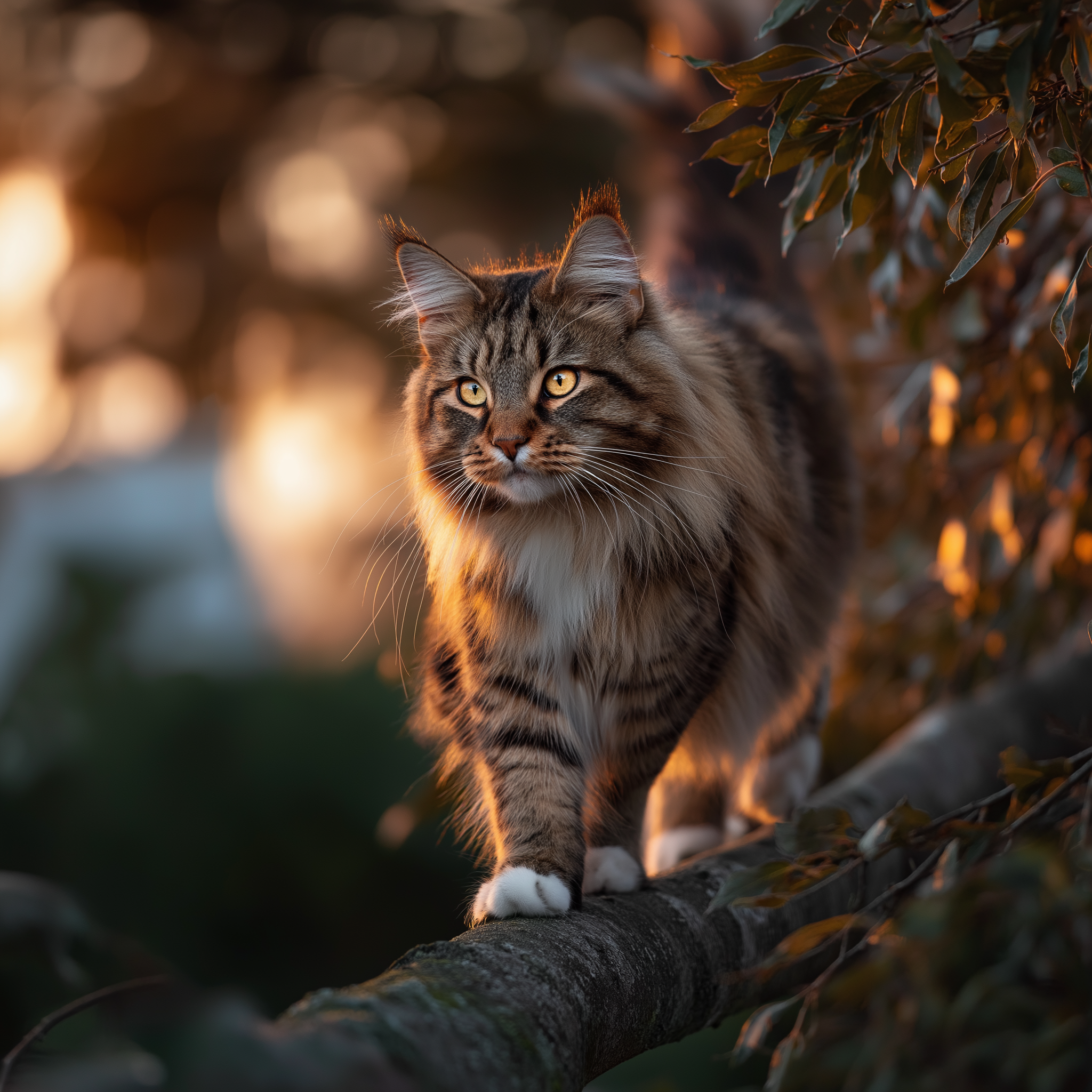 These cats were valued as mousers on farms and homesteads, thriving in cold, wet climates thanks to their water-resistant double coat and naturally climbing-oriented body structure. Their long legs, tufted ears, and semi-wild profile reflect their survivalist past.